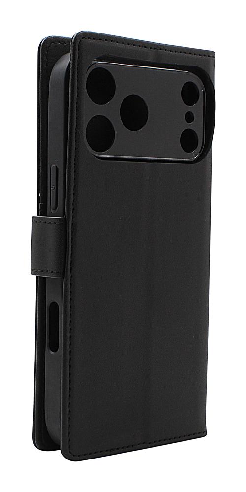 This wallet case also includes a stand function. A fold on the back allows you to position your phone at an angle – perfect for watching videos or making video calls. The phone remains inside the wallet the whole time, fully protected. See the product photos to understand how it works in practice.
