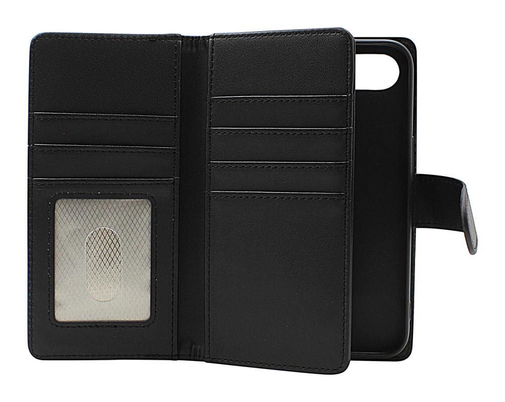 The wallet is designed like a book, with 3 card slots on one side – including a transparent ID slot – and 4 more card slots on the other. Behind both card panels there are bill compartments for cash or receipts. Your phone is placed in the protective shell attached to the wallet.