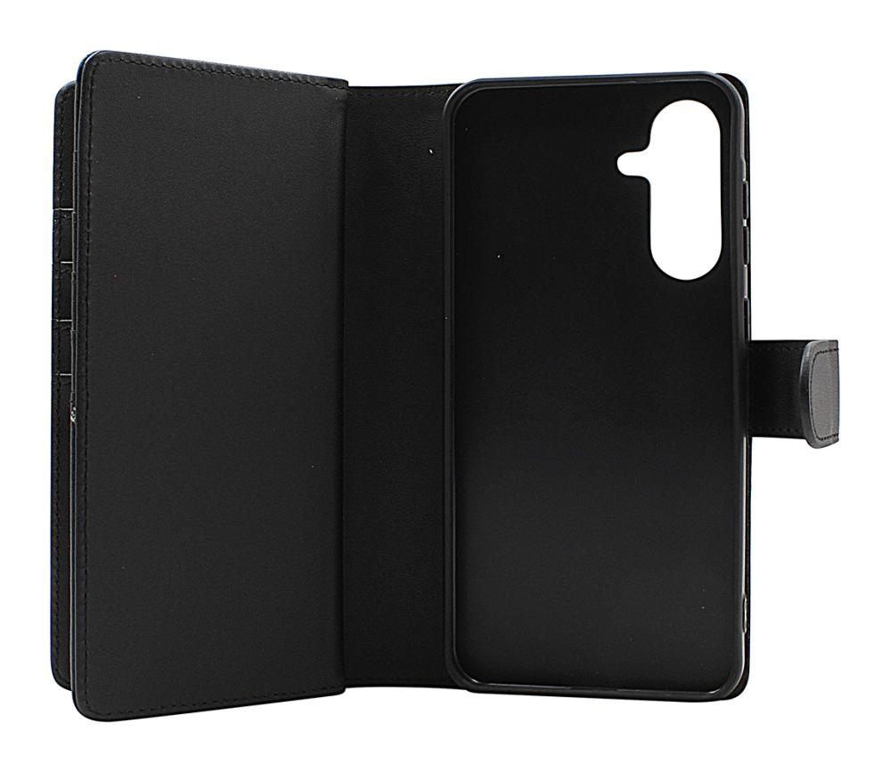 The wallet is made of PU leather – a high-quality synthetic material that softens over time and offers a feel similar to real leather. It features a magnetic closure and an integrated stand function, allowing you to tilt your phone for watching videos or making hands-free calls.