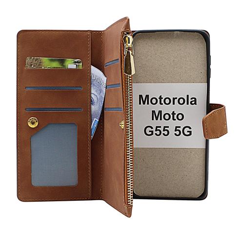 XL Motorola Moto G55 5G Luxury Phone Wallet (Brown)